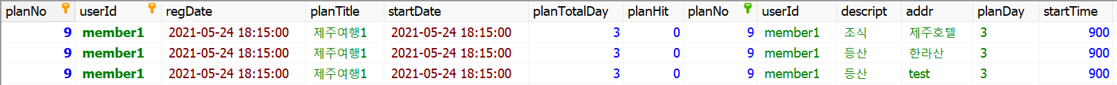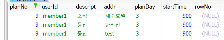 plan테이블을 부모로 하는 schedule테이블이 있다.