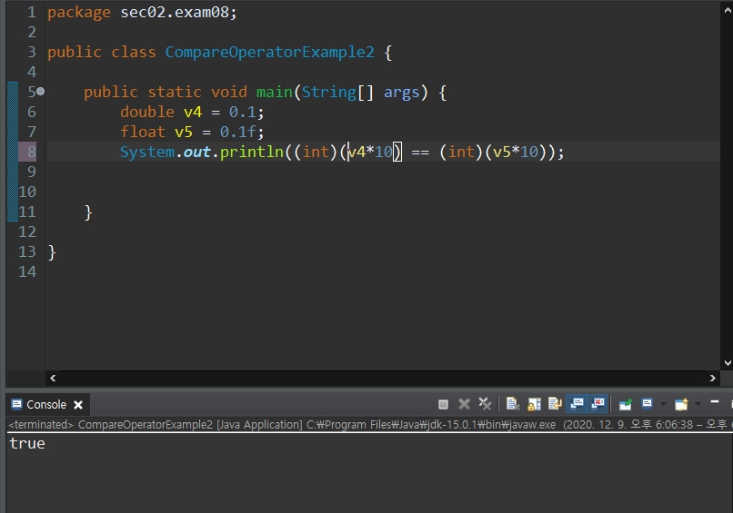 double로 선언한 0.1과 float로 선언한 0.1은 false가 나온다.