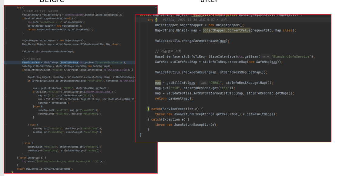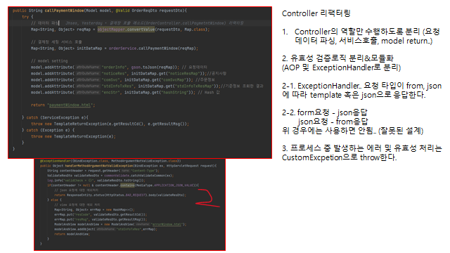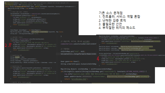 컨트롤러, 서비스 역할이 혼동되어 유효성검증과, 각종 변수와 메소드들이 마구잡이로 선언되어있는 소스