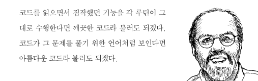 가장 와닿은 의견은 짐작한 기능을 그대로 이루는 코드이다.
