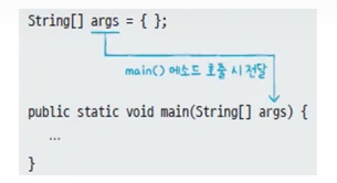 public static void main(String[] args) {...}에 String[]args가 붙어있는 이유는