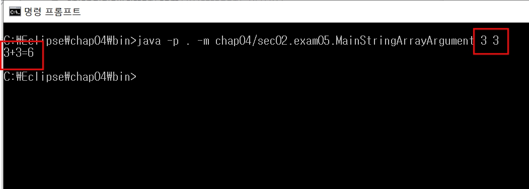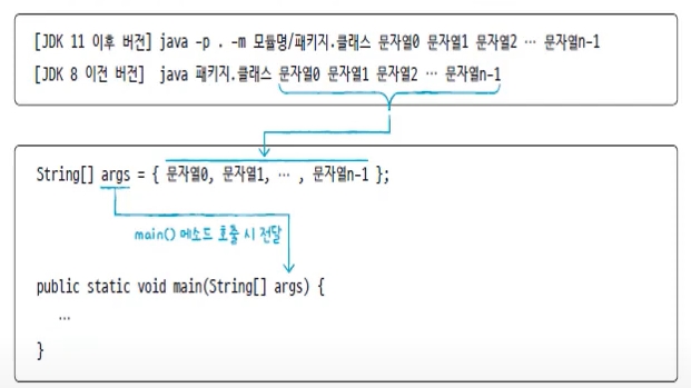 java -p . -m 자바프로젝트명/패키지명/클래스명 값1 값2 ... 값n