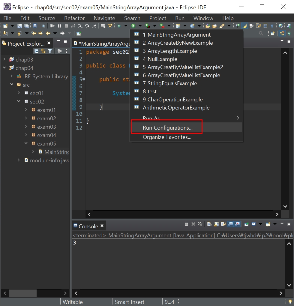 하지만 이클립스가 실행 환경이라면 args배열을 사용할 일이 많지 않다고 한다.