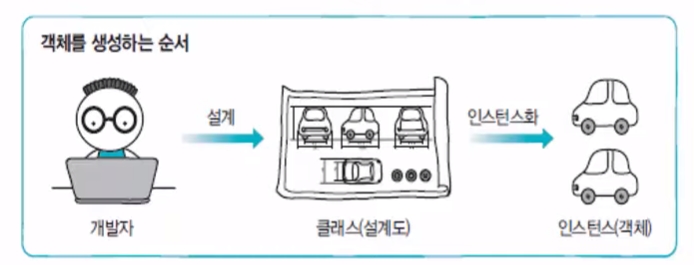 - 객체지향 프로그래밍 단계 (클래스 설계 -> 클래스로 객체 생성 -> 객체 이용)