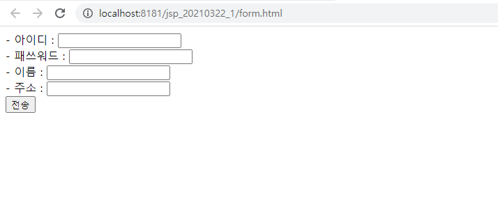 html파일을 실행하면 아래와 같은 입력 폼이 나타날 것이다.