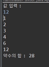 약수의 합을 저장할 변수 f에 누적연산해주고 출력
